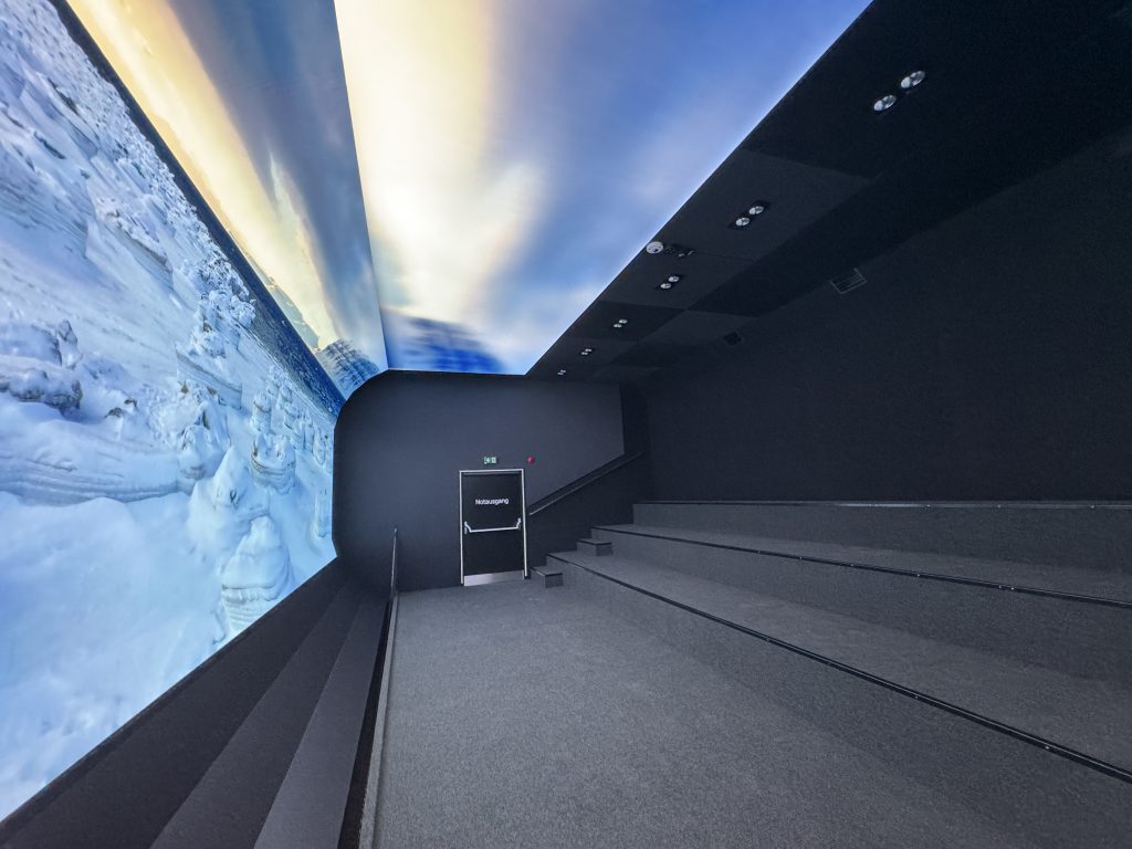 Auf der Videowand werden thematisch abgestimmte Inhalte rund um das Eis der Antarktis gezeigt. Die Kombination aus hochwertiger Bildqualität, großer Fläche und gewölbter Darstellung verstärkt die Wirkung der Inhalte und macht komplexe Zusammenhänge verständlich, emotional und nachhaltig erlebbar. Dieses Projekt zeigt exemplarisch, wie moderne Videowall-Technologie gezielt eingesetzt werden kann, um Inhalte nicht nur darzustellen, sondern erlebbar zu machen.